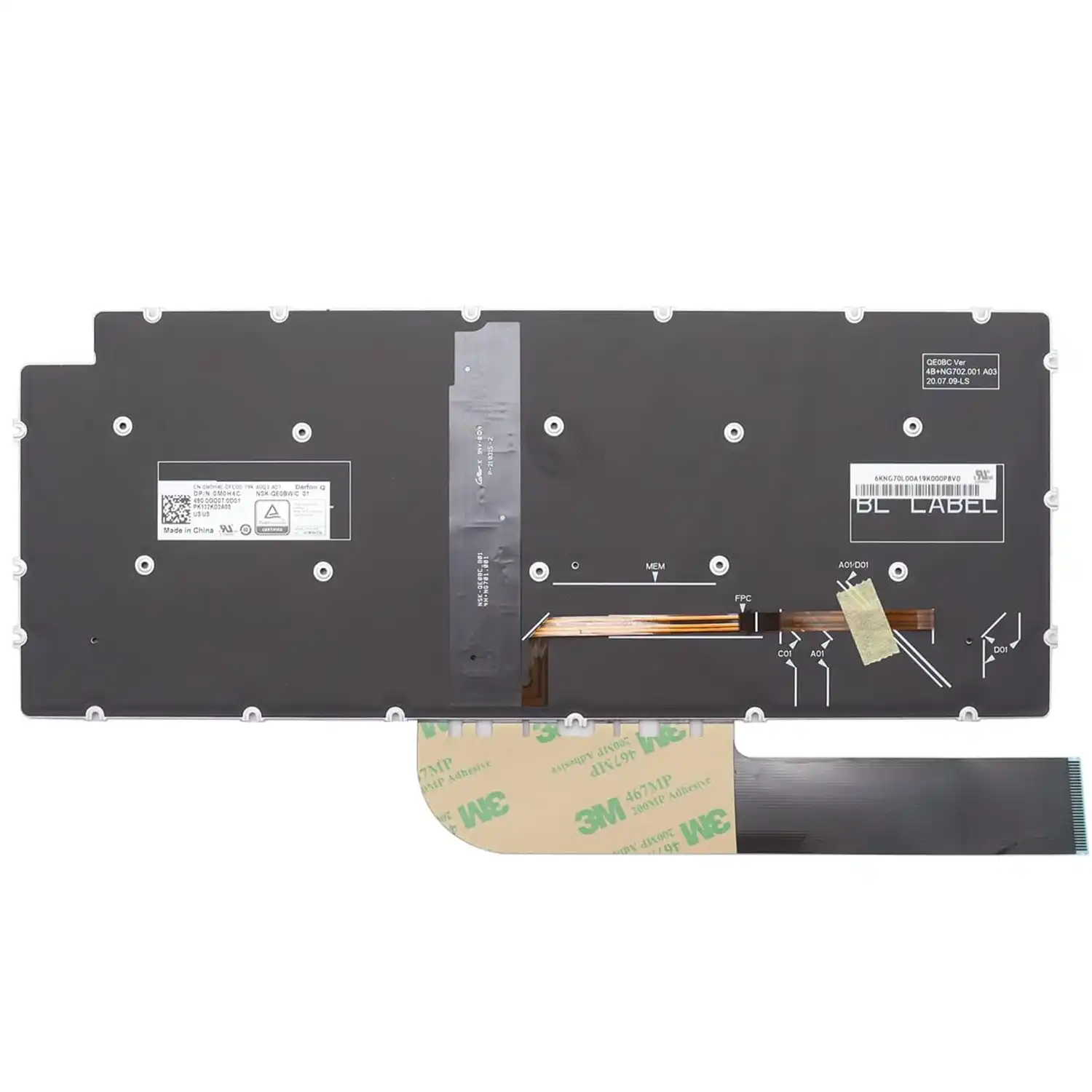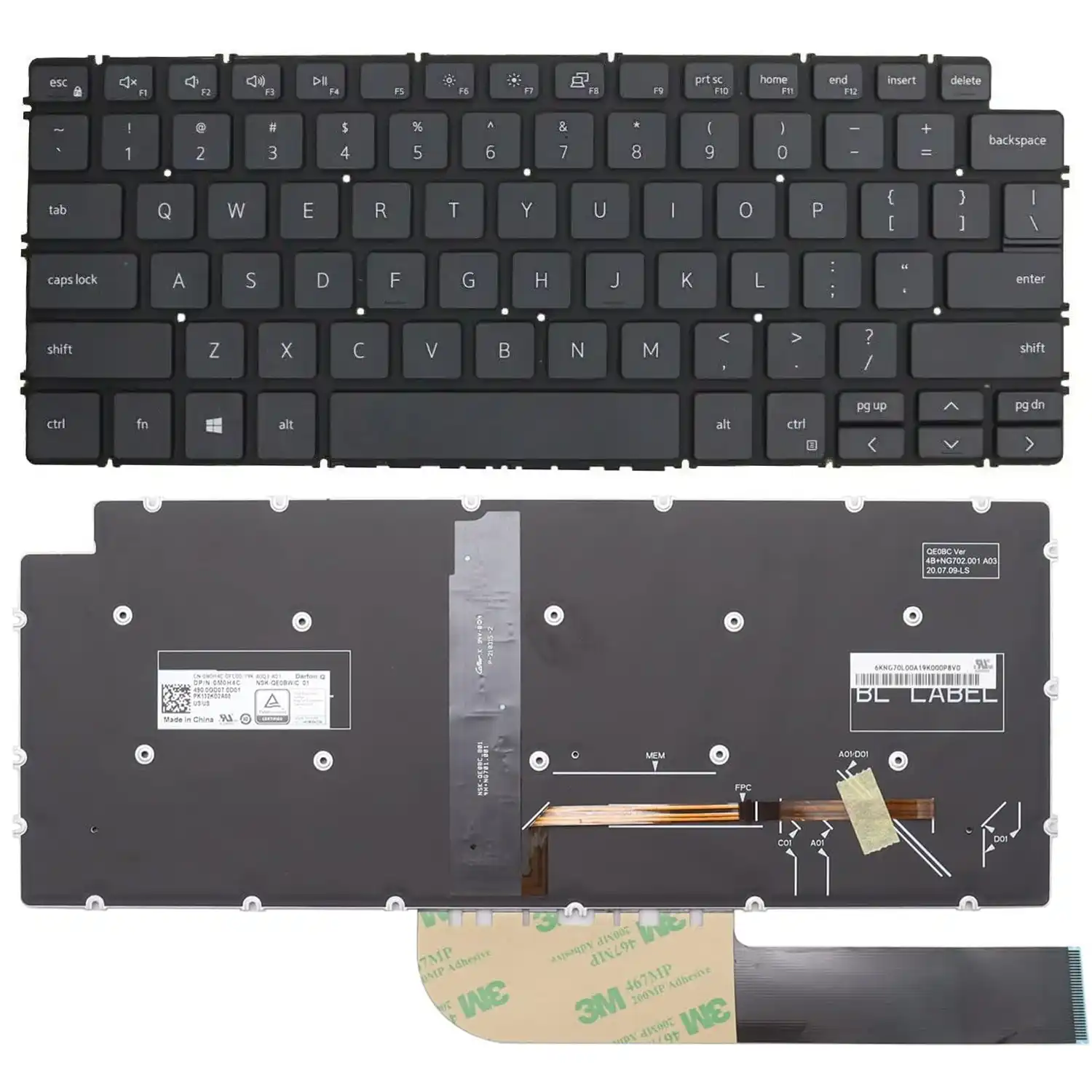 Keyboard Dell Inspiron 13 7391 US Black Without Frame / With Backlit