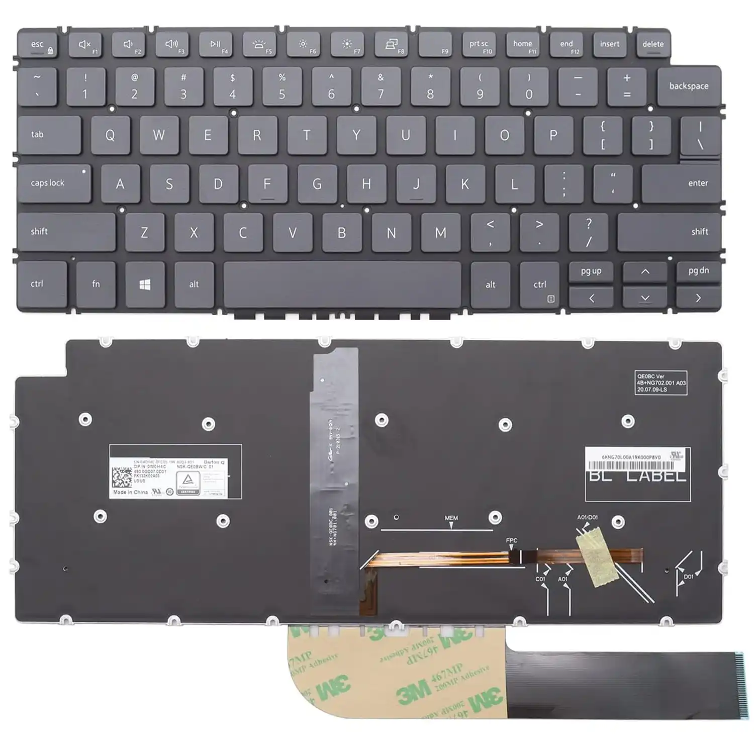Keyboard Dell Inspiron 13 7391 US Gray Without Frame / With Backlit