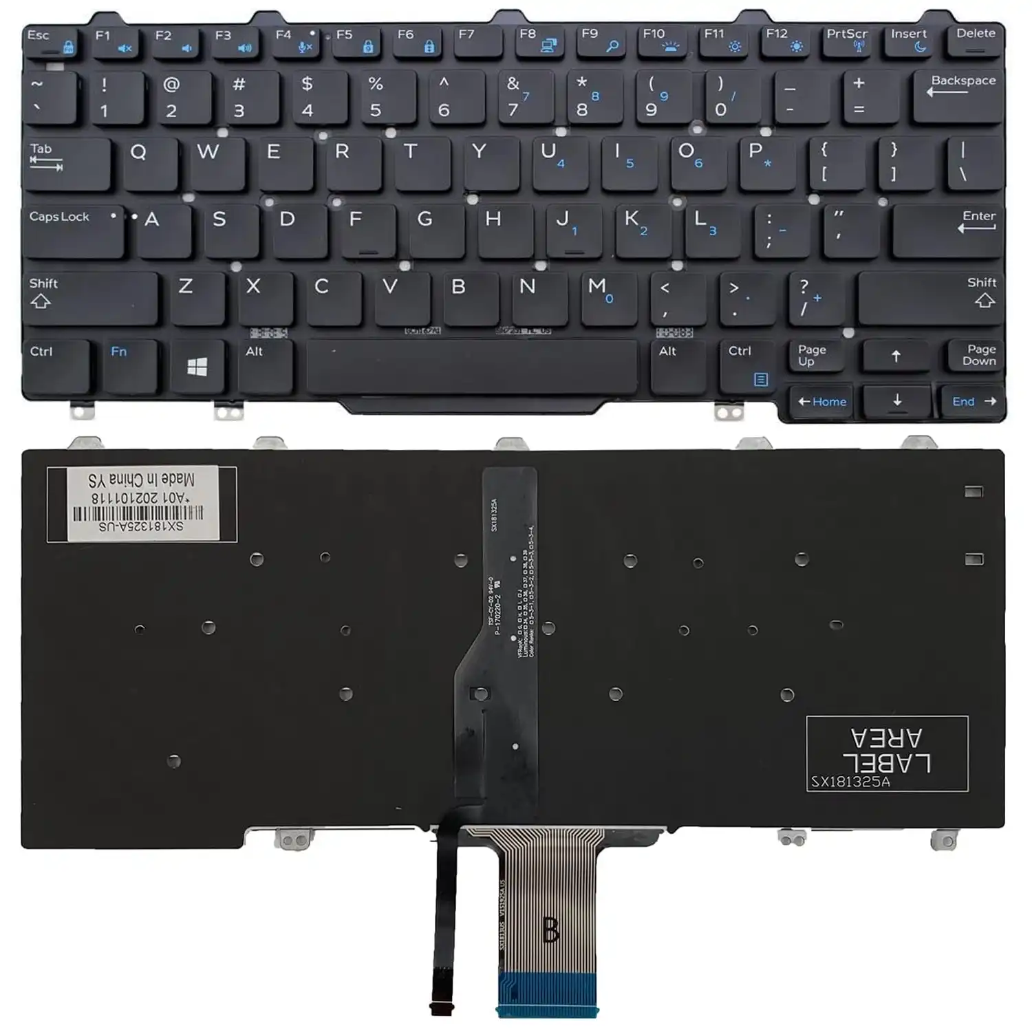 Keyboard Dell Latitude E7250 US Black Without Frame / Pointer / With Backlit