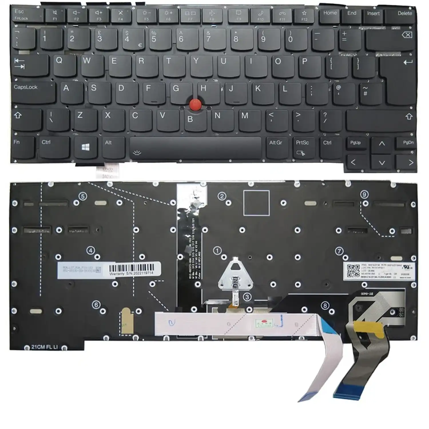Keyboard Lenovo ThinkPad T14s 2nd Gen UK Black Without Frame / With Pointer / Backlit